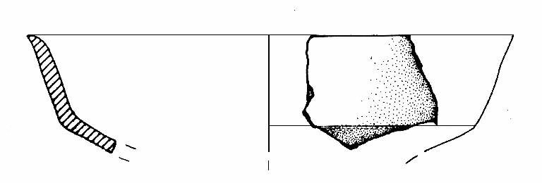 Orlo assottigliato, lievemente estroflesso; parete distinta svasata rettilinea; vasca troncoconica. Colore: grigio.