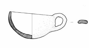 Orlo piatto. Ansa nastriforme ad anello sopraelevata. Colore: marrone.
