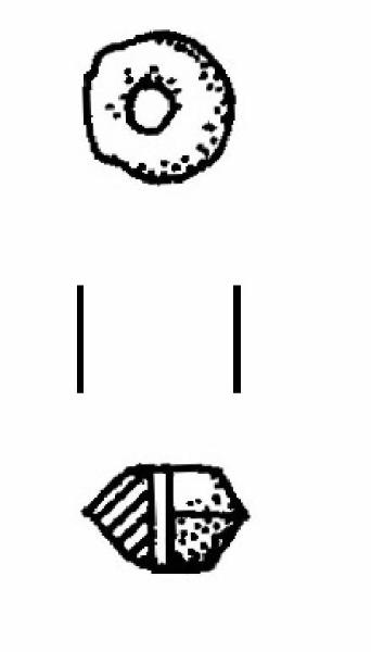 Forma biconica con foro passante centrale.
