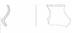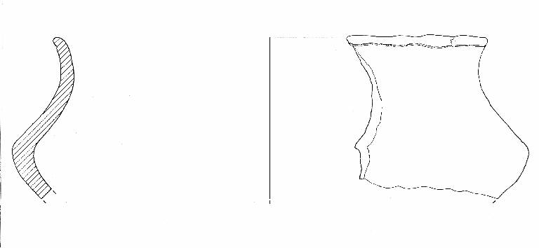 Orlo di forma arrotondata, esoverso.\nSotto l'orlo corre una linea incisa con andamento irregolare. Al di sopra di questa vi è un'unghiata. Colore: bruno chiaro.