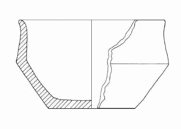 Orlo di forma arrotondato, esoverso; parete distinta lievemente concava; vasca troncoconica; fondo piano. Colore: bruno.