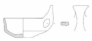 Orlo di forma arrotondata; parete distinta rettilinea, lievemente svasata all'orlo; vasca troncoconica; fondo piano. Ansa sopraelavata con appendice asciforme.\nColore: grigio scuro.