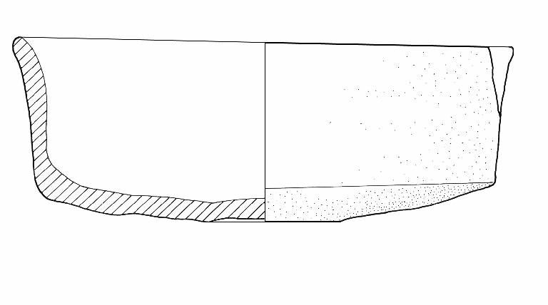 Orlo di forma arrotondata, lievemente esoverso; parete distinta rettilinea, lievemente svasata; vasca troncoconica; fondo lievemente concavo.\nColore: grigio scuro.