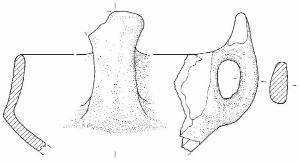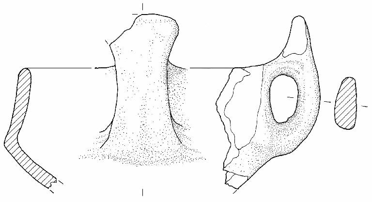 Capeduncola con orlo arrotondato, corpo carenato a parete leggermente concava, con Ø orlo < Ø carena, vasca a calotta. Ansa a nastro verticale, soprelevata, ad ascia, con margine superiore leggermente convesso, impostata su orlo e carena.\nImpasto a tessitura media, di colore grigio chiaro (2,5Y7/0), inclusi puntiformi, granulosi e rari grossolani, con frequenza scarsa e distribuzione irregolare. Superficie lisciata di colore grigio scuro (7,5R4/0).