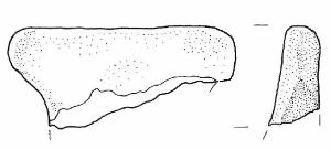 Frammento di ansa a nastro verticale, soprelevata, a "T", con margine superiore rettilineo.\nImpasto a tessitura fine, di colore bruno molto pallido (10YR8/3), inclusi puntiformi, con frequenza scarsa e distribuzione regolare. Superficie lisciata e lucidata, di colore grigio scuro (7,5R4/0).