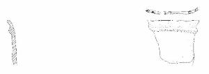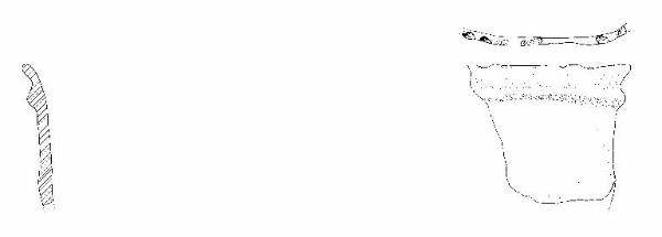 Orlo di forma arrotondata decorato a impressioni digitali; parete con andamento sub-rettilineo. Cordone plastico orizzontale poco sotto l'orlo.\nColore: giallo-grigio.