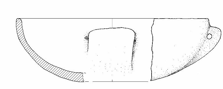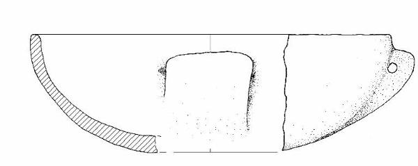 Orlo di forma arrotondata. Larga ansa sottocutanea con ppendice a gomito.\nColore: marrone grigio scuro.