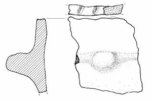 Orlo piatto decorato a unghiate. Poco sotto l'orlo presa sub-ovale da cui si diparte un cordone plastico.\nColore: marrone scuro.