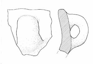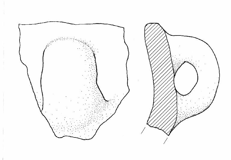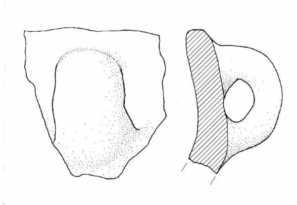 Orlo piatto. Ansa nastriforme.\nColore: grigio-beige.