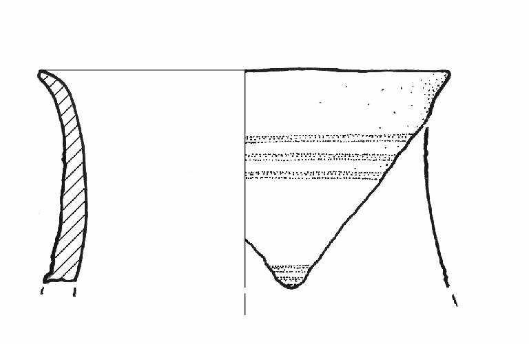 Orlo di forma arrotondata, assottigliato. Sul collo linee parallele ottenute a solcatura.\nColore: marrone scuro.