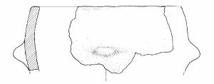 Orlo piatto. Sulla parete, poco sotto l'orlo, presa a linguetta.\nColore: marrone.