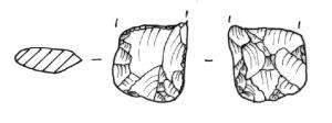 Raschiatoio foliato multiplo, ritocco coprente, bifacciale. Margine inferiore convesso, margini laterali rettilinei. Sezione biconvessa.