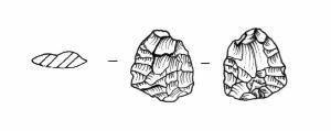 Ritocco coprente bifacciale. Base debolmente convessa. Sezione biconvessa irregolare.