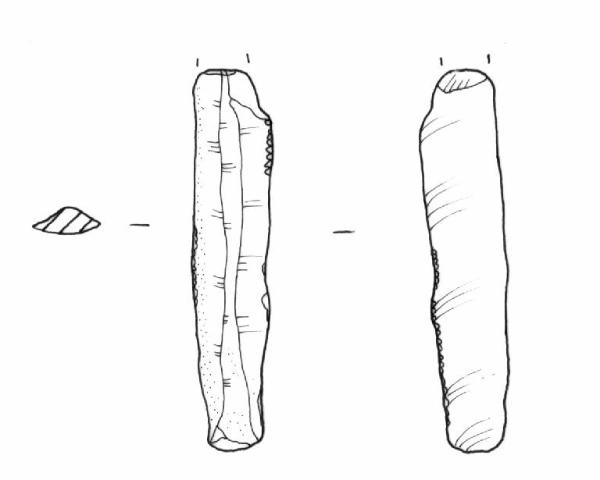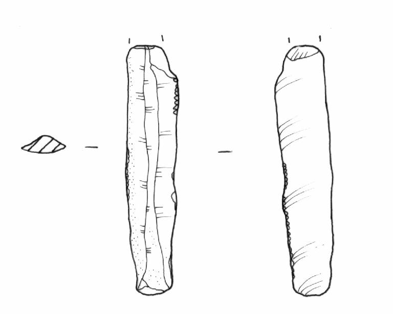 Ritocco erto, alternato sul margine destro e indiretto sul margine sinistro.