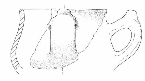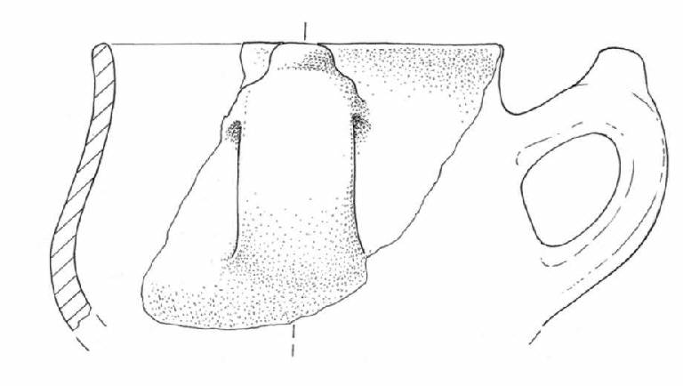 Biconico-globoso con labbro diritto, ansa ad orecchio con apice a bottone.