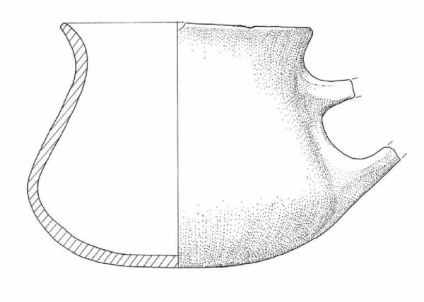 Biconico-globoso con labbro fortemente esoverso e ansa impostata sul diametro maggiotre e sotto il labbro, base lievemente convessa.