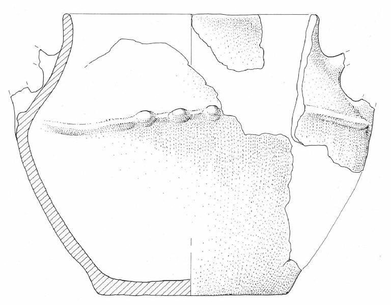 Biconico con tre bugne su cordone lungo il diametro massimo.