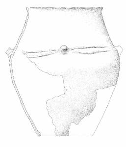 Giara biconica, con quattro bugne a tubercolo, equidistanti, impostate su doppio cordone passante lungo il diametro massimo, labbro esoverso.