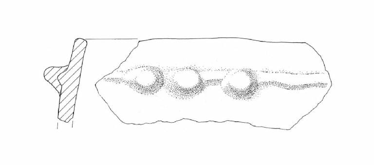 Troncoconico, con cordone e tre bugne poco sotto l'orlo.