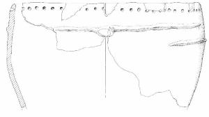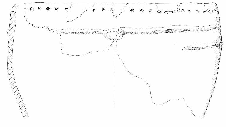 Troncoconico, con prese su cordone lungo il labbro, a fori non tutti passanti.