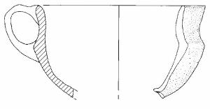 Parete carenata con vasca a calotta e parete superiore concava, carena a due terzi altezza, orlo arrotondato esoverso. Ansa ad anello impostata sull-orlo e sulla carena.