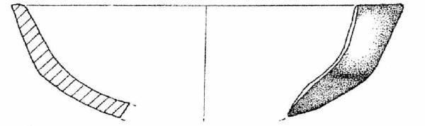 Orlo arrotondato, corpo carenato con vasca bassa e parete rettilinea esoversa, vasca poco profonda. Superficie di colore grigio scuro (2,5 Y 4/0).