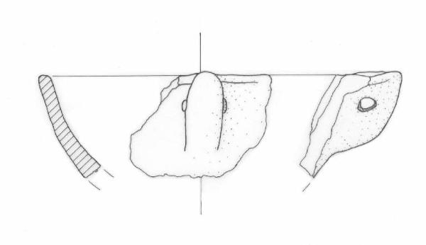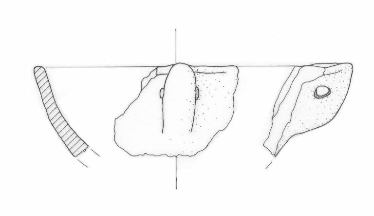Profilo emisferico con ansa canaliculata con tubercolo impostata ad altezza orlo.
