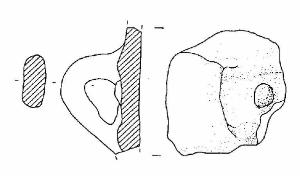 Frammento di parete di dolio, con ansa a nastro verticale, ad orecchio; a destra dell'ansa vi è una decorazione plastica a pastiglia.
