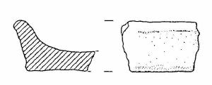 Piatto con orlo arrotondato, decorato ad impressioni digitali, parete svasata, fondo piatto.