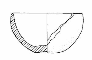 Scodella a profilo continuo, con orlo assottigliato, corpo semisferico, fondo concavo.