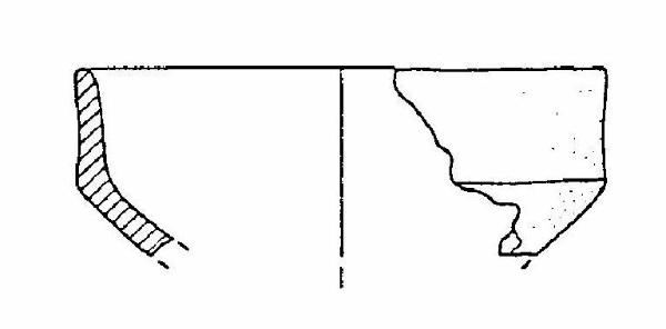 Frammento carenato di scodella o capeduncola, con orlo arrotondato, corpo carenato, a parete leggermente concava, con diametro all'orlo uguale al diametro alla carena, vasca troncoconica.