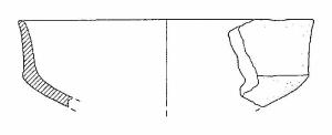 Frammento carenato di scodella o capeduncola, con orlo assottigliato e leggermente estroflesso, corpo carenato, a parete lievemente concava, con diametro all'orlo maggiore del diametro alla carena, vasca a calotta. Colore grigio