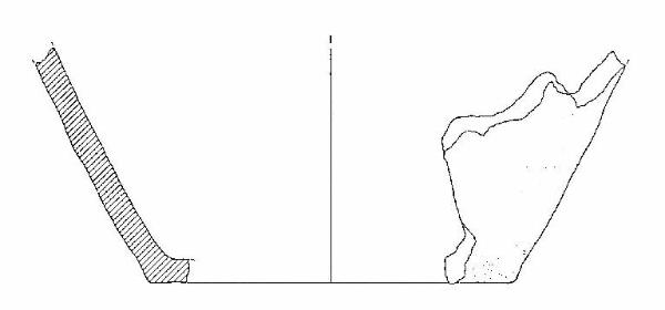 Frammento di vaso a corpo troncoconico, fondo piatto.