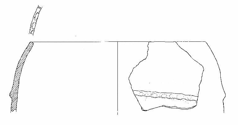 Vaso con orlo arrotondato e leggermente inclinato verso l'interno, decorato ad impressioni digitali, corpo ovoide; ottantasei mm sotto l'orlo vi è un cordone plastico digitato orizzontale.