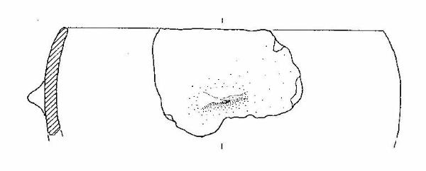 Vaso con orlo arrotondato, corpo ovoide; cinquanta mm sotto l'orlo è impostata una presa a linguetta triangolare.