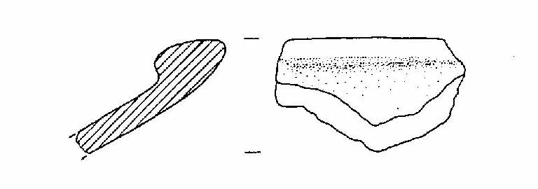 Vaso con orlo ingrossato, corpo presumibilmente biconico.