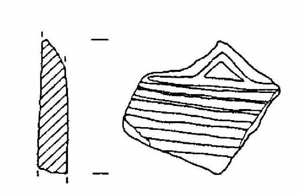 Frammento di parete, decorato da sottili solcature parallele e da un motivo triangolare.