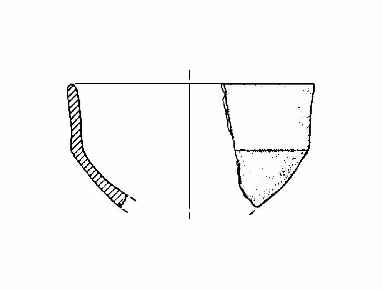 A profilo articolato. Orlo arrotondato. Corpo carenato a parete leggermente concava, con diametro dell'orlo maggiore del diametro della carena. Vasca a calotta. Colore: grigio scuro.