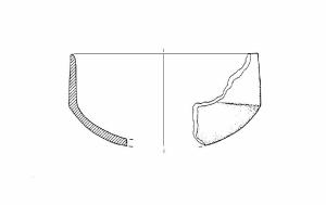A profilo articolato. Orlo arrotondato e leggermente assottigliato. Corpo carenato a parete rettilinea, con diametro dell'orlo inferiore al diametro della carena. Vasca a calotta. Colore: grigio.