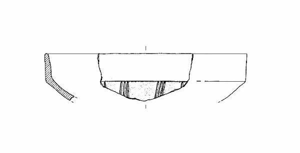 A profilo articolato. Orlo arrotondato. Corpo carenato a parete rettilinea, con diametro dell'orlo lievemente maggiore del diametro della carena. Vasca troncoconica. Decorazione a solcature al di sotto della linea di carena. Colore: grigio chiaro.