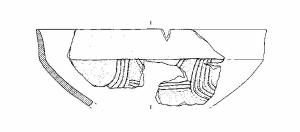 A profilo articolato. Orlo arrotondato. Corpo carenato a parete lievemente concava, con diametro dell'orlo maggiore del diametro della carena. Vasca troncoconica. Decorazione a solcature curvilinee e orizzontali al di sotto della linea di carena. Colore: grigio.