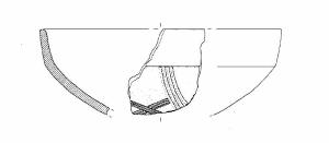 A profilo articolato. Orlo arrotondato. Corpo carenato a parete rettilinea, con diametro dell'orlo maggiore del diametro della carena. Vasca troncoconica. Decorazione a solcature curvilinee ed a "X" al di sotto della linea di carena. Colore: grigio.
