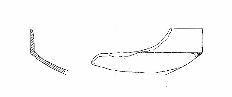 A profilo articolato. Orlo piatto. Corpo carenato a parete rettilinea, con diametro dell'orlo uguale al diametro della carena. Vasca troncoconica. Colore: grigio.