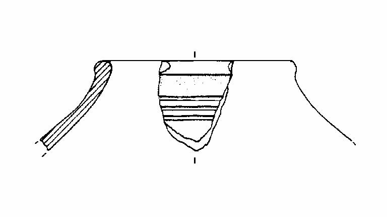 Parete forse rettilinea con orlo ingrossato e lievemente esoverso. Decorazione a solcature orizzontali e parallele al poco al di sotto dell'orlo. Colore: grigio.