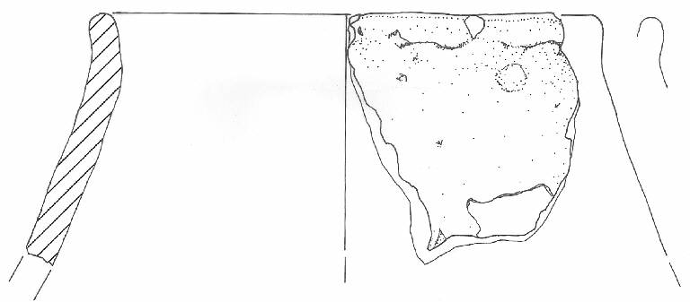 Orlo arrotondato liscio su breve labbro verticale, il tratto del collo conservato ha profilo troncoconico con parete rettilinea e restituisce un profilo complessivamente globoso o biconico-globoso, spalla ventre e base piana non conservati.\nNon si conserva traccia dell'ansa. Colore: da camoscio a beige bruno.