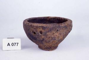 Piedino a disco, vasca ovoidale con fori di sospensione.