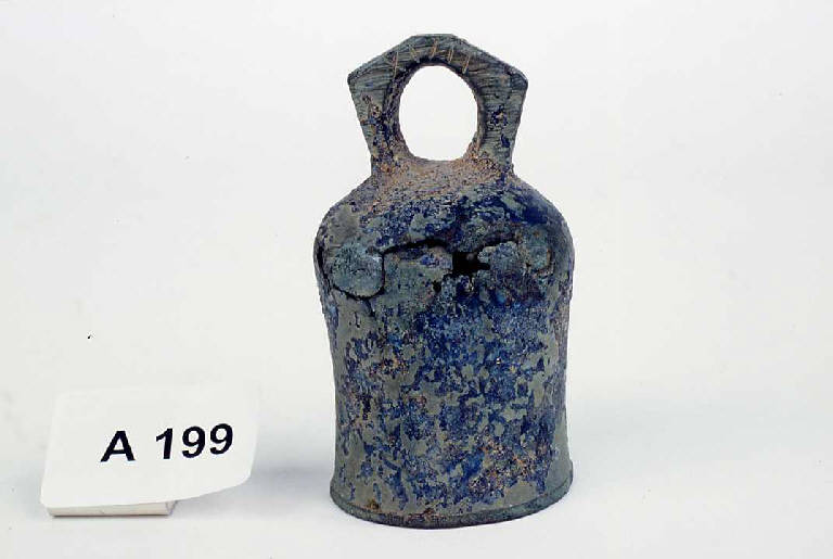 Corpo cilindrico con anello di sospensione desinente a punta.