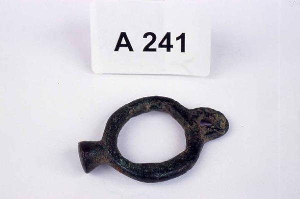 Corpo ad anello con elemento di sospensione e terminale troncoconico.