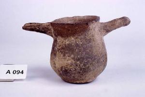 Corpo ovoidale a profilo continuo poco svasato all'orlo con lungo becco aperto econtrapposto ad una presa cilindroide impostata sotto l'orlo.