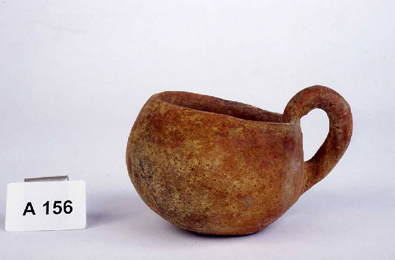 Fondo piatto, corpo globulare con ansa a bastoncello sormontante.